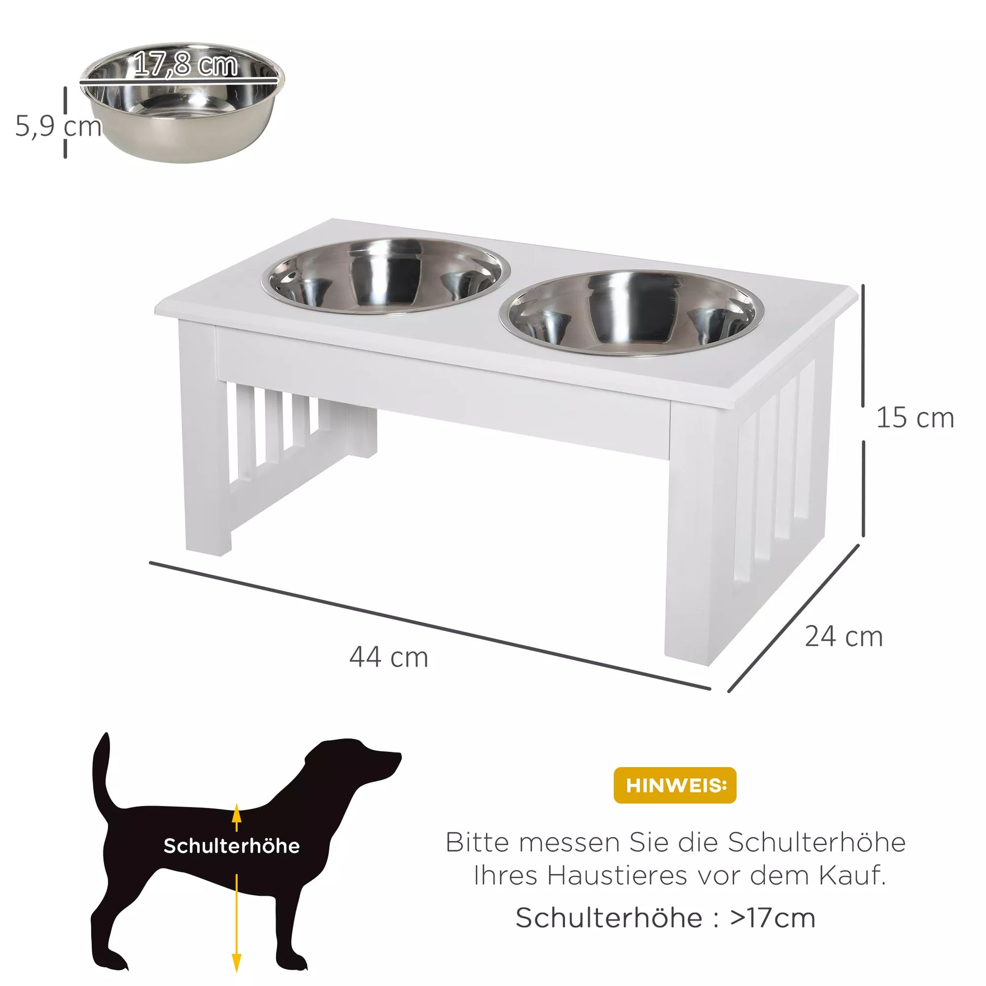 Palutiniet savus četrkājainos draugus ar mūsu stilīgo suņu barotavu no. Šai barotavai ar izturīgu MDF korpusu ir divas augstas kvalitātes nerūsējošā tērauda bļodas. Tās ir ne tikai izturīgas pret rūsu un viegli tīrāmas, bet arī ārkārtīgi higiēniskas un drošas jūsu mīlulim. Paceltais statīvs nodrošina ērtāku barošanas pozīciju un uztur barību tīru. Neaizstājams palīgs katrā suņu mājā.