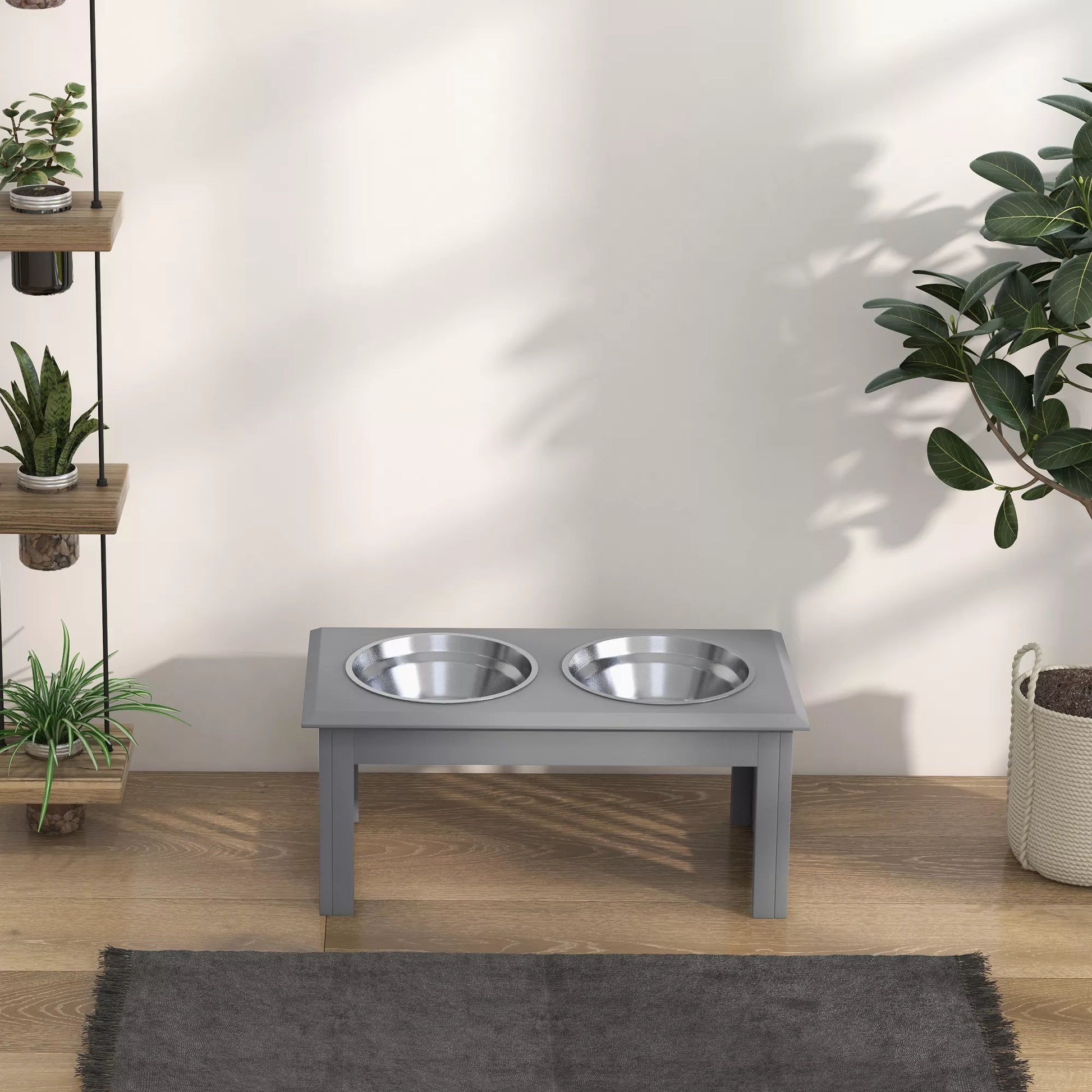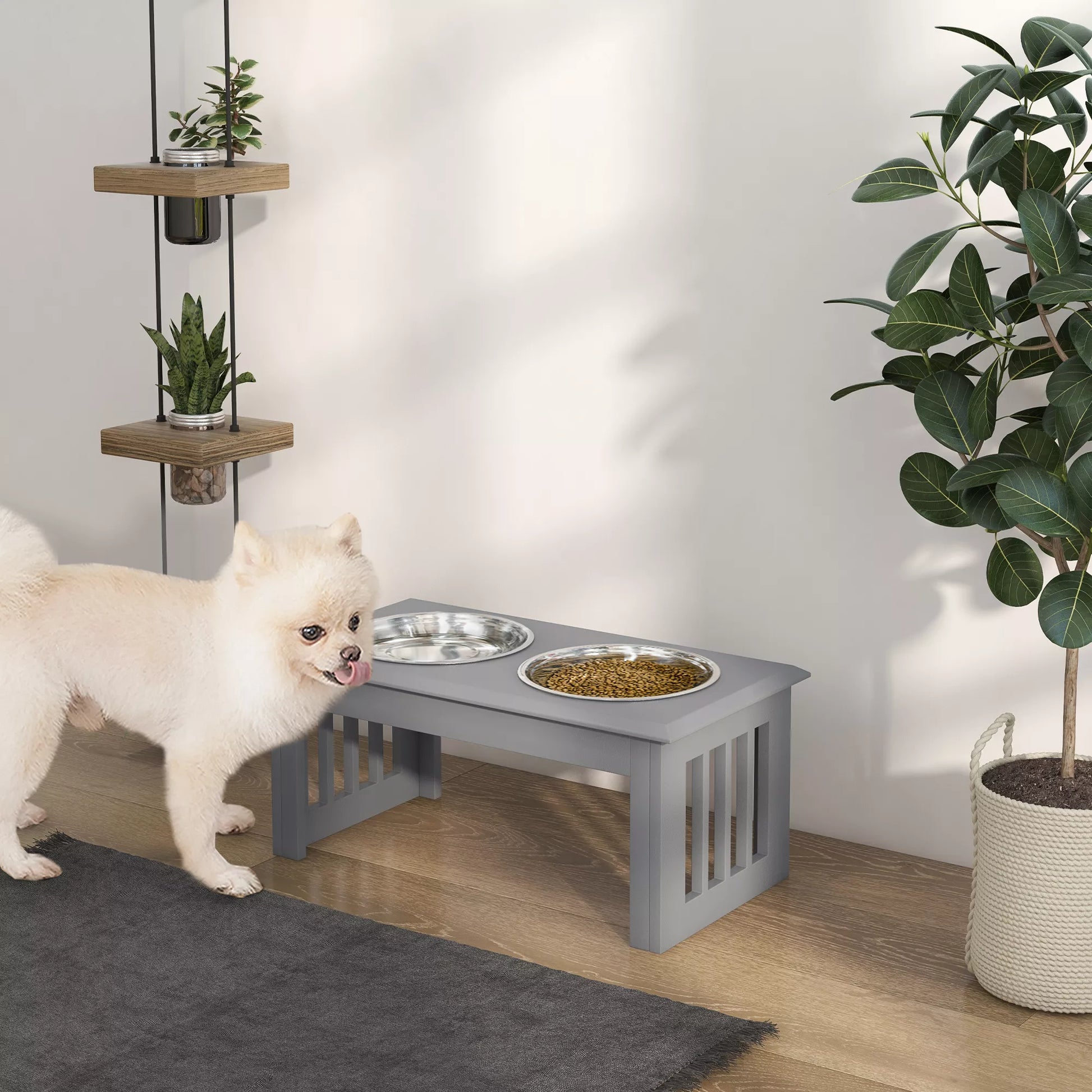 Suņu barošanas stacija, 2 nerūsējošā tērauda bļodas, neslīdoša virsma, 58,4x30,5x25,4 cm, pelēka