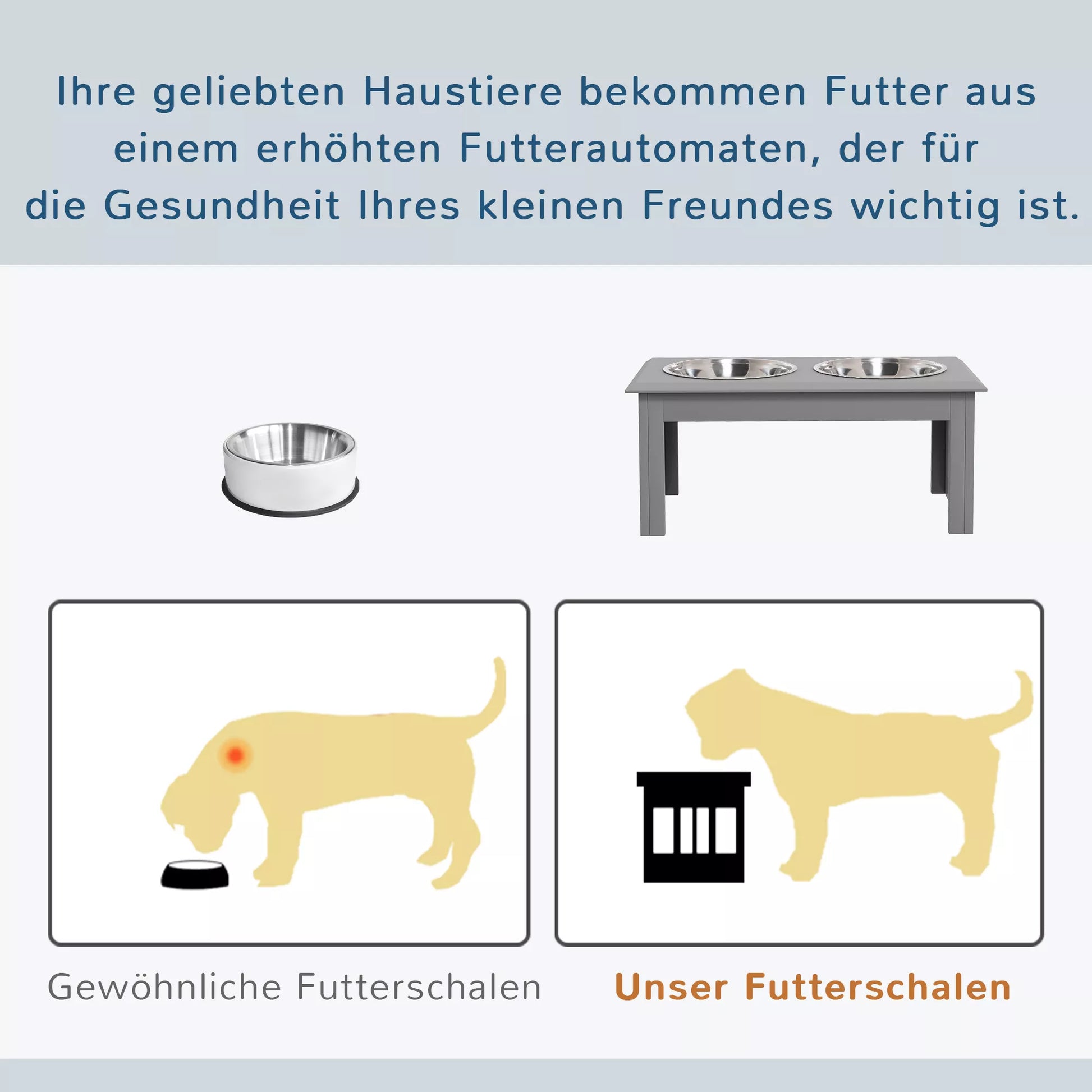 Palutiniet savus četrkājainos draugus ar mūsu stilīgo suņu barības statīvu no. Šim statīvam ar izturīgu MDF korpusu ir divas augstas kvalitātes nerūsējošā tērauda bļodas. Tās ir ne tikai izturīgas pret rūsu un viegli tīrāmas, bet arī ārkārtīgi higiēniskas un drošas jūsu mīlulim. Paaugstinātā pozīcija nodrošina ērtāku barošanas pozīciju un palīdz uzturēt barību tīru. Neaizstājams palīgs katrā suņu mājsaimniecībā.