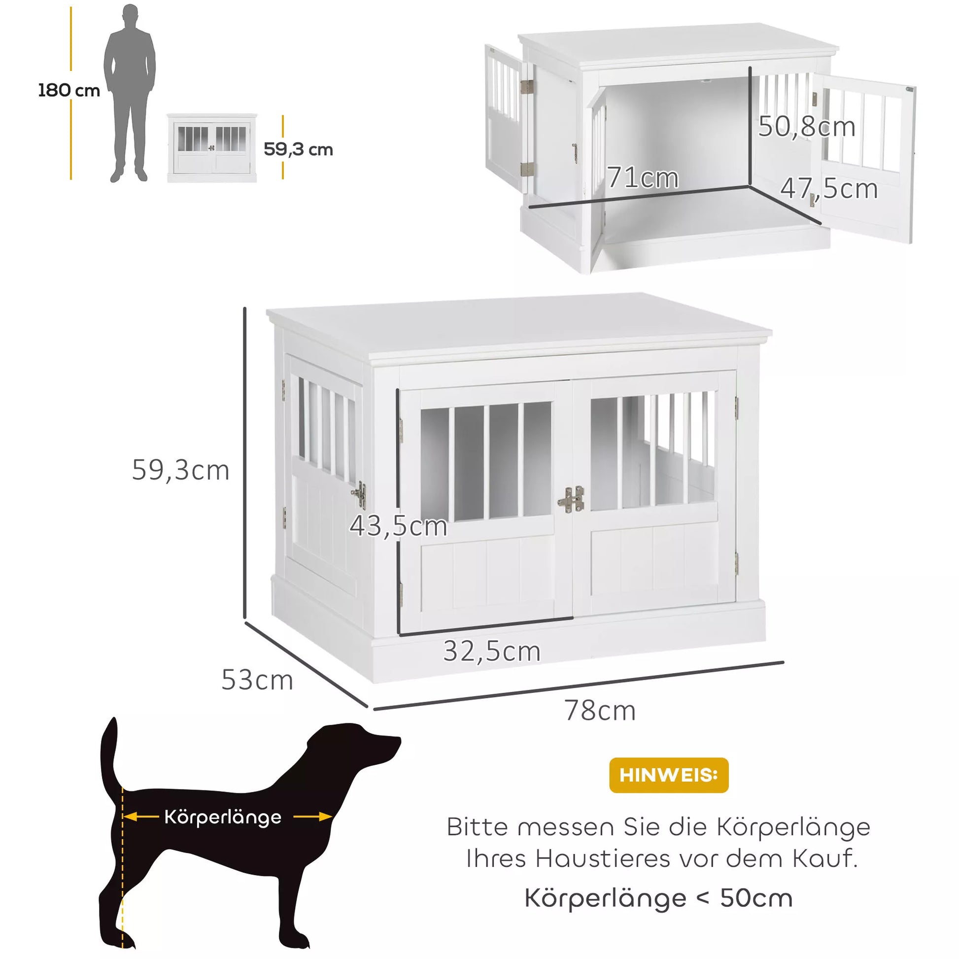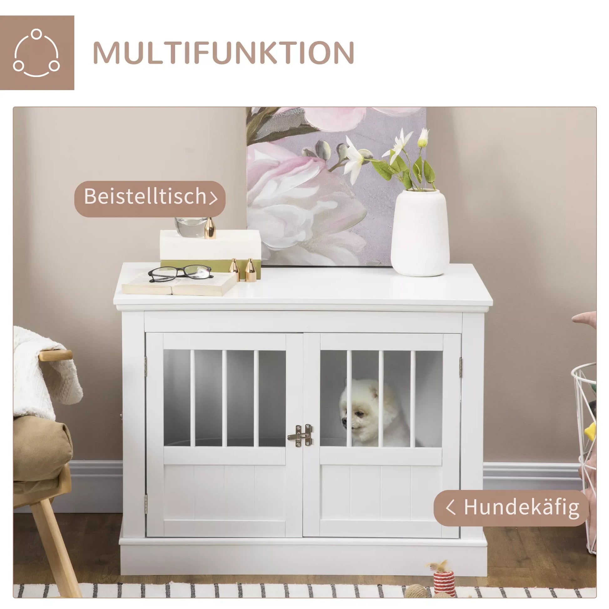 Suņu būris, mēbeles ar 3 durvīm, suņu būda, būris mājai, 78 x 53 x 59,3 cm, balts