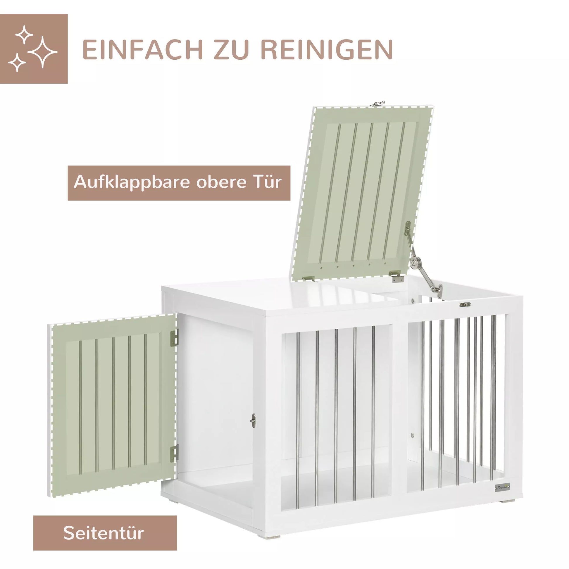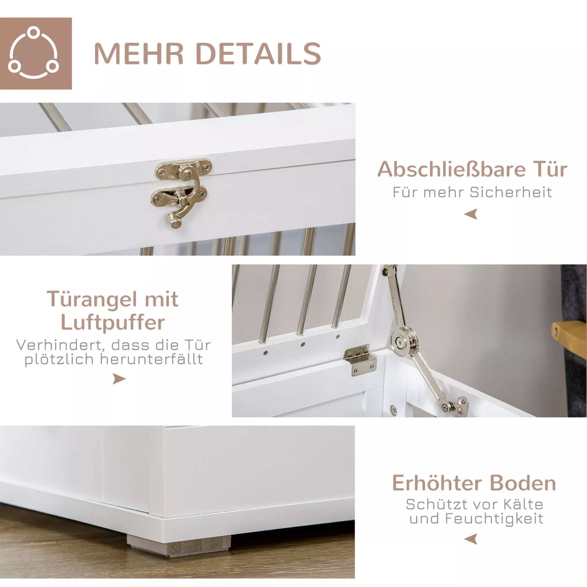 Šis modernais suņu voljērs nodrošinās jūsu sunim drošu atpūtas vietu. Voljērs, kas izgatavots no tērauda un MDF, ir piemērots vidēja izmēra suņiem. Augšējās un sānu durvis var aizslēgt, un tās var izmantot īslaicīgai izmitināšanai. Modernais dizains lieliski iederas dažādos interjera stilos.