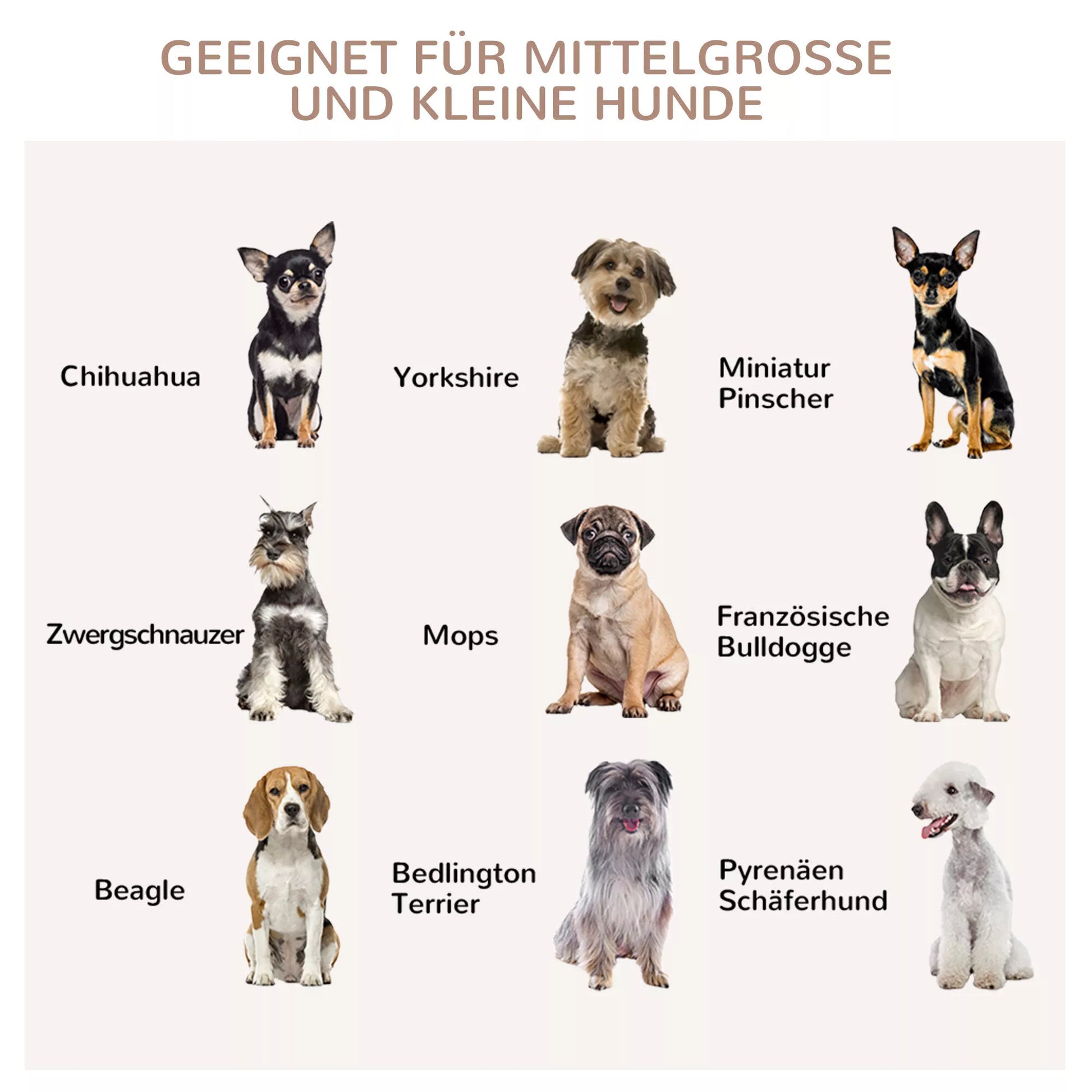 - ✔ Piemērots vidēja lieluma suņiem līdz 20 kg, ieteicams, lai suns būtu īsāks par 50 cm