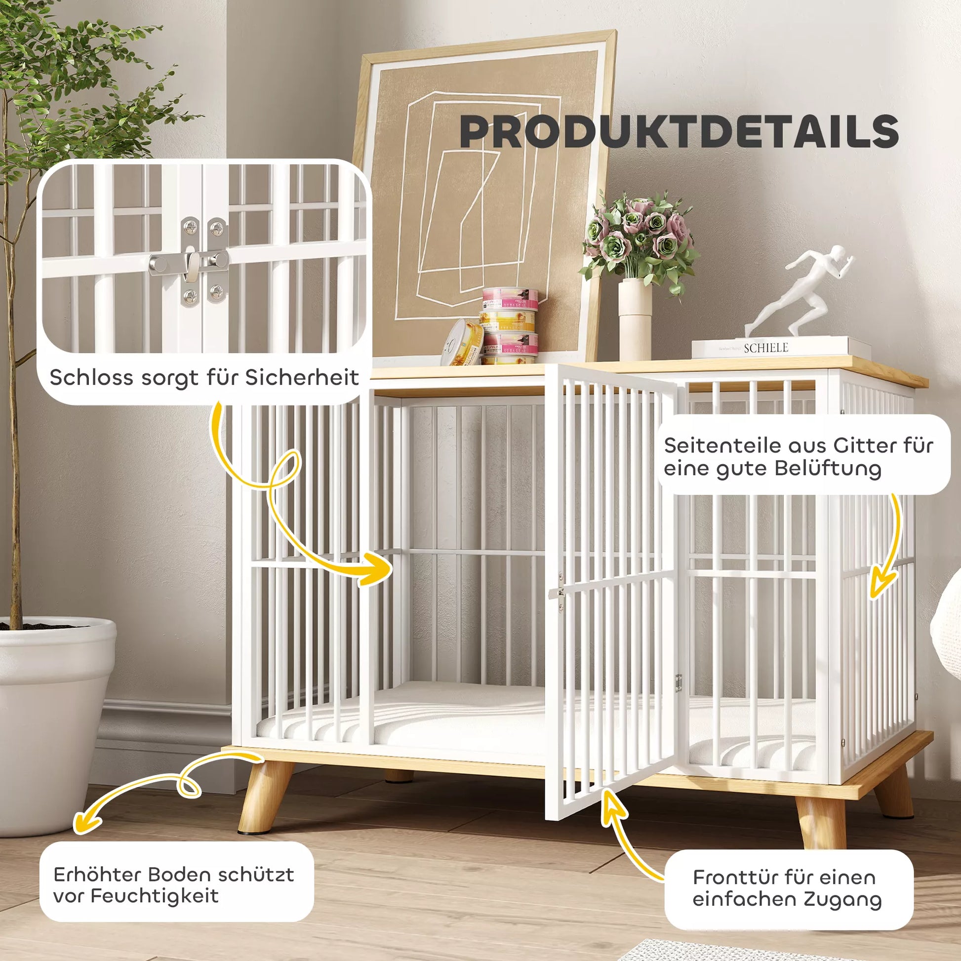 - ✔ Šim suņu būrim ir aizslēdzamas durvis papildu drošībai