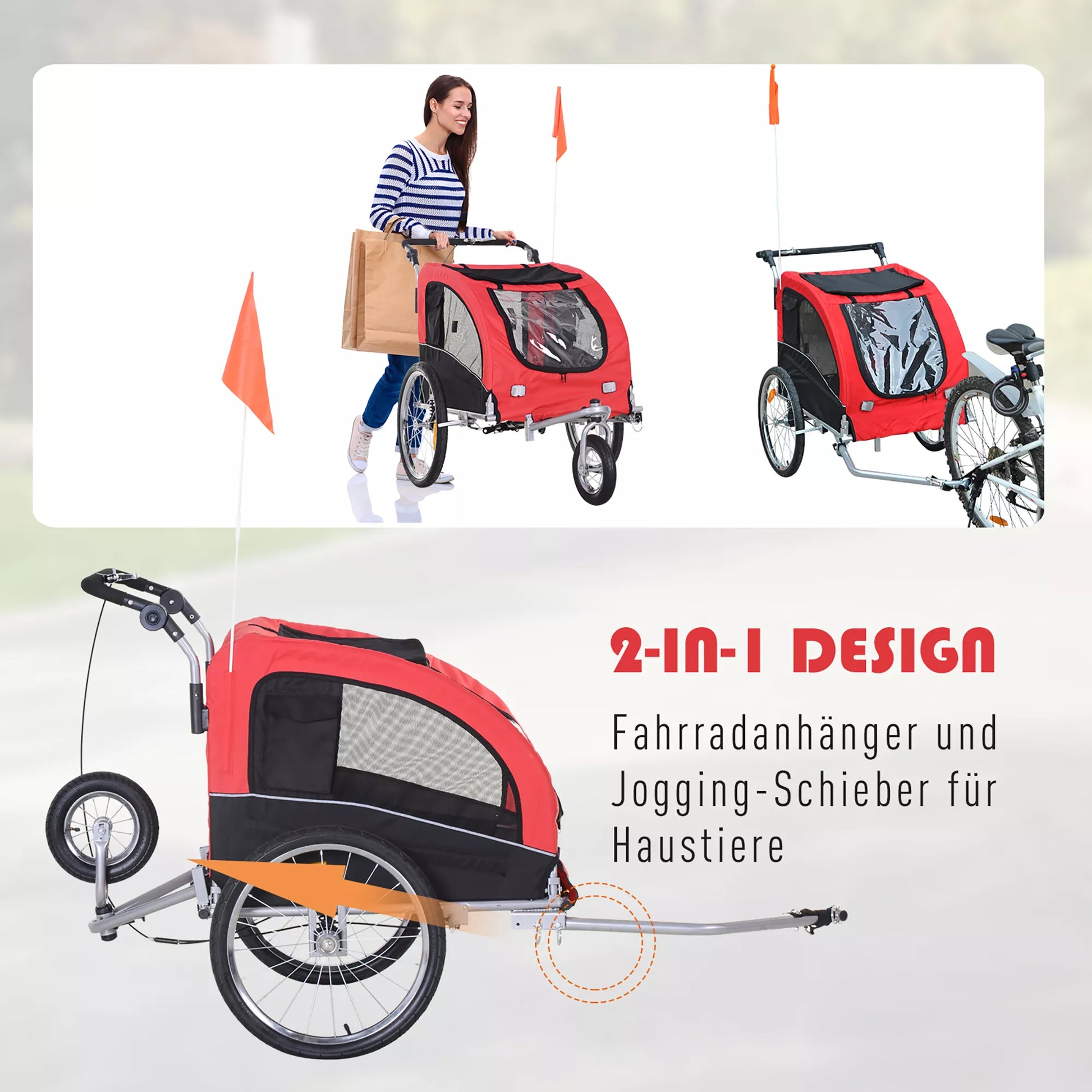 Suņu piekabe ar braukšanas funkciju, kardāna savienojums, tērauda, sarkana+melna
