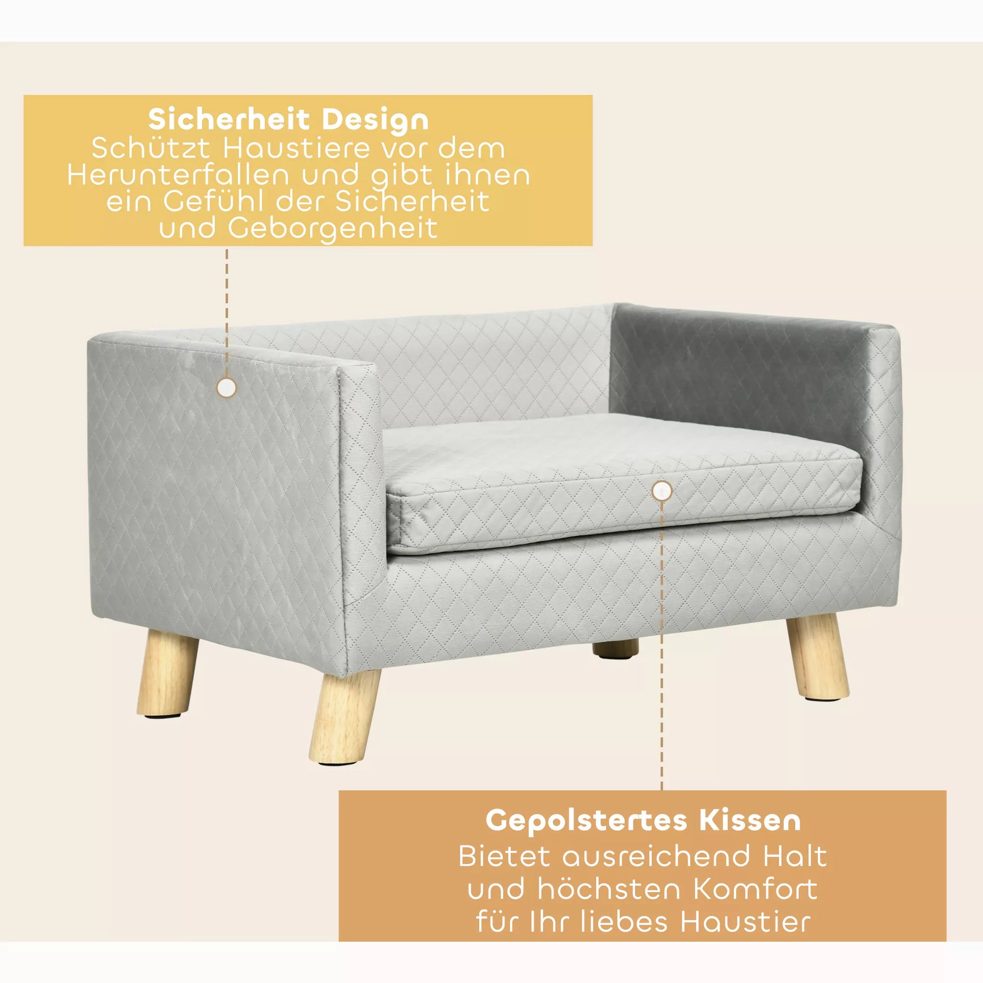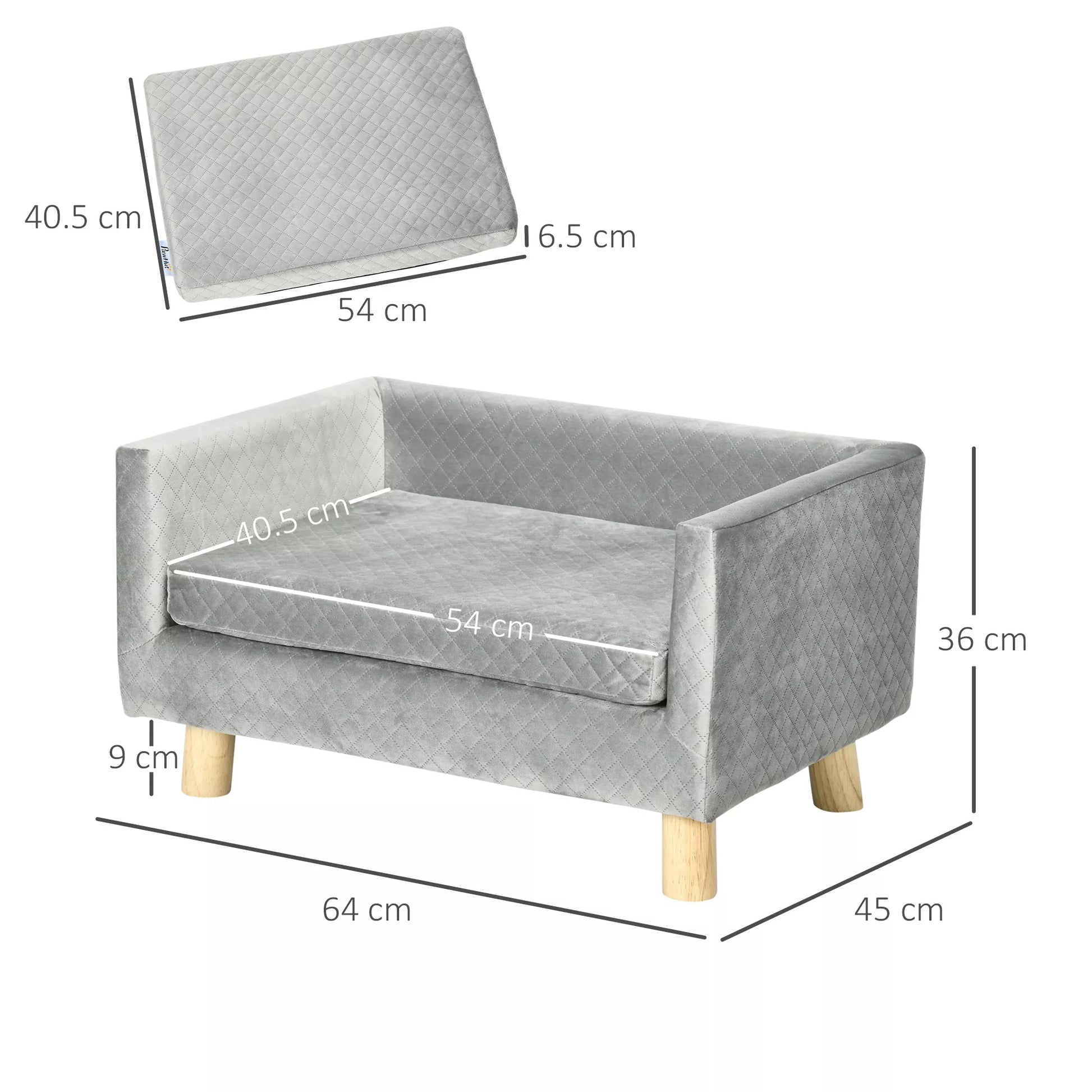 Suņu dīvāns ar koka kājām, suņu gulta, mājdzīvnieku dīvāns, suņu paklājiņš mazam sunim līdz 8 kg, samtains pieskāriens, pelēks, 64 x 45 x 36 cm