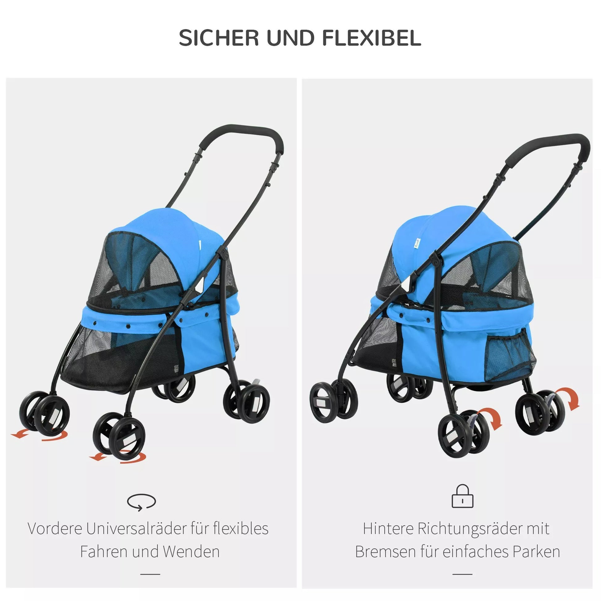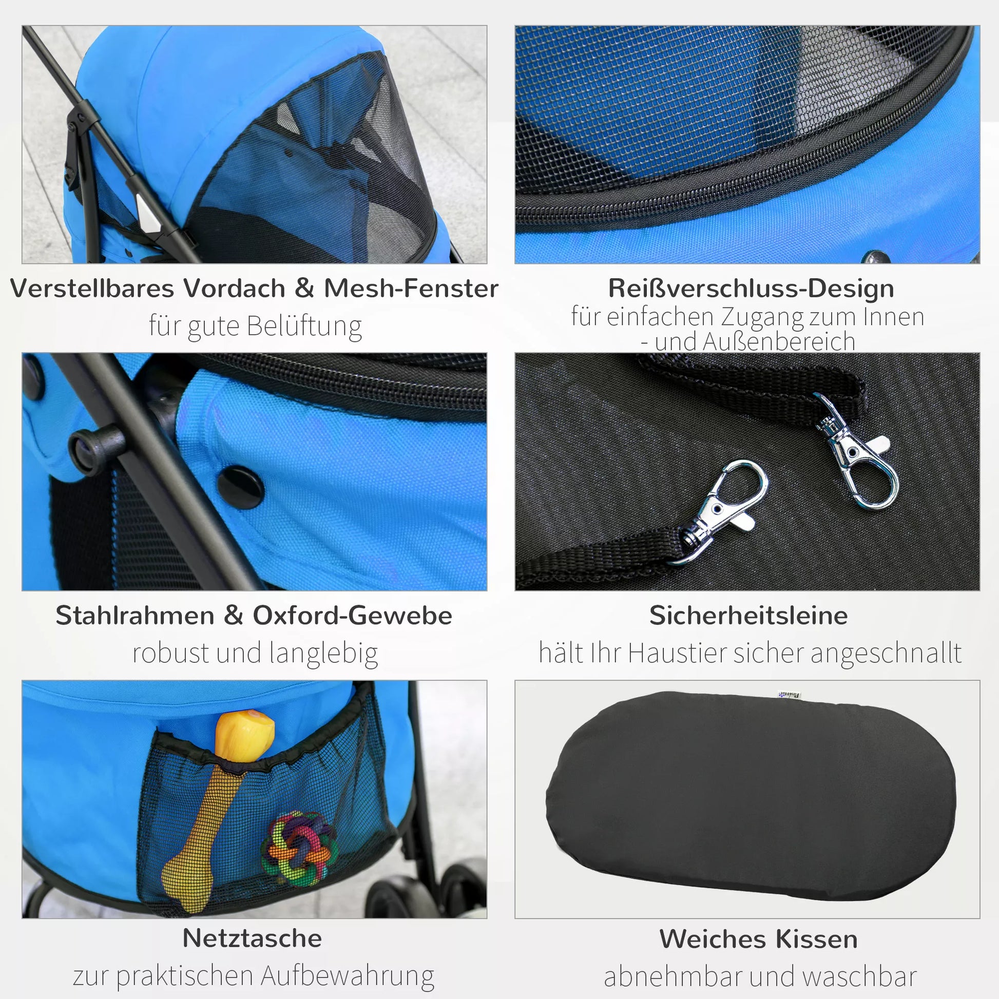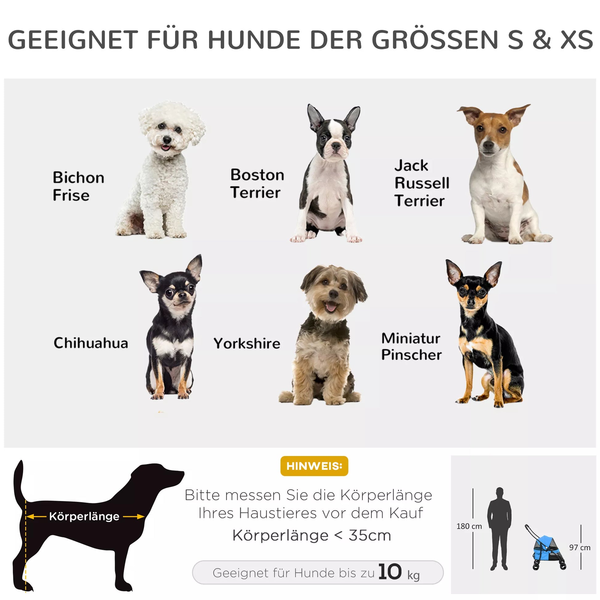 Suņu ratiņi, regulējams jumts, sieta logs, rāvējslēdzējs, tērauda, 82x47x97 cm, zili/melni