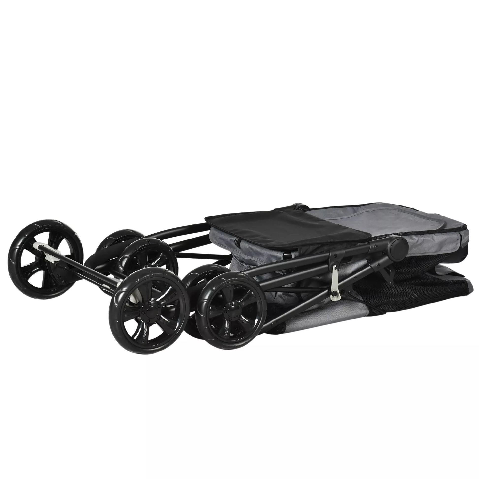 Suņu ratiņi, salokāmi, līdz 20 kg, 3 sānu kabatas, 102 cm x 62 cm x 105 cm, pelēki.
