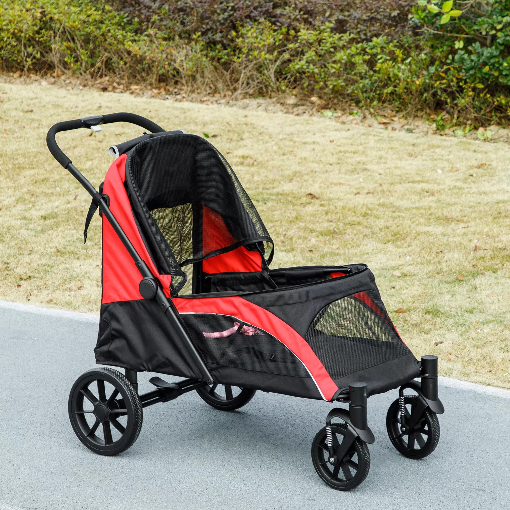 Šunų vežimėlis, sulankstomas šunų vežimėlis dideliems šunims, keturratis naminių gyvūnų vežimėlis, saugos diržai, stabdžiai, juodos spalvos