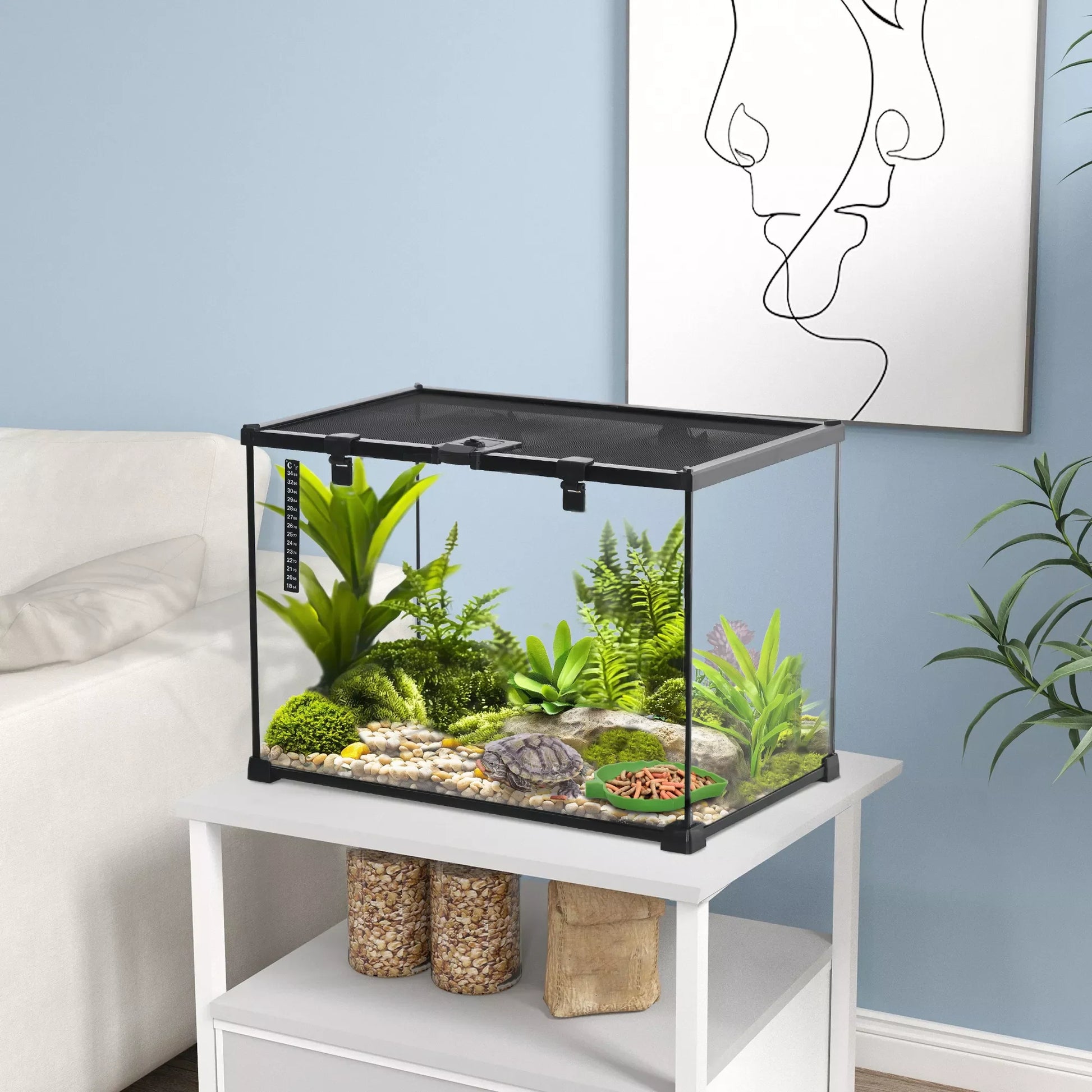 Terārijs rāpuļiem Barošanas kaste stikla terārijā abiniekiem, zirnekļveidīgajiem ar termometru Rāpuļu vairošanās kaste gliemežiem, abiniekiem, kukaiņiem, bruņurupučiem Melna 50 x 30 x 35 cm