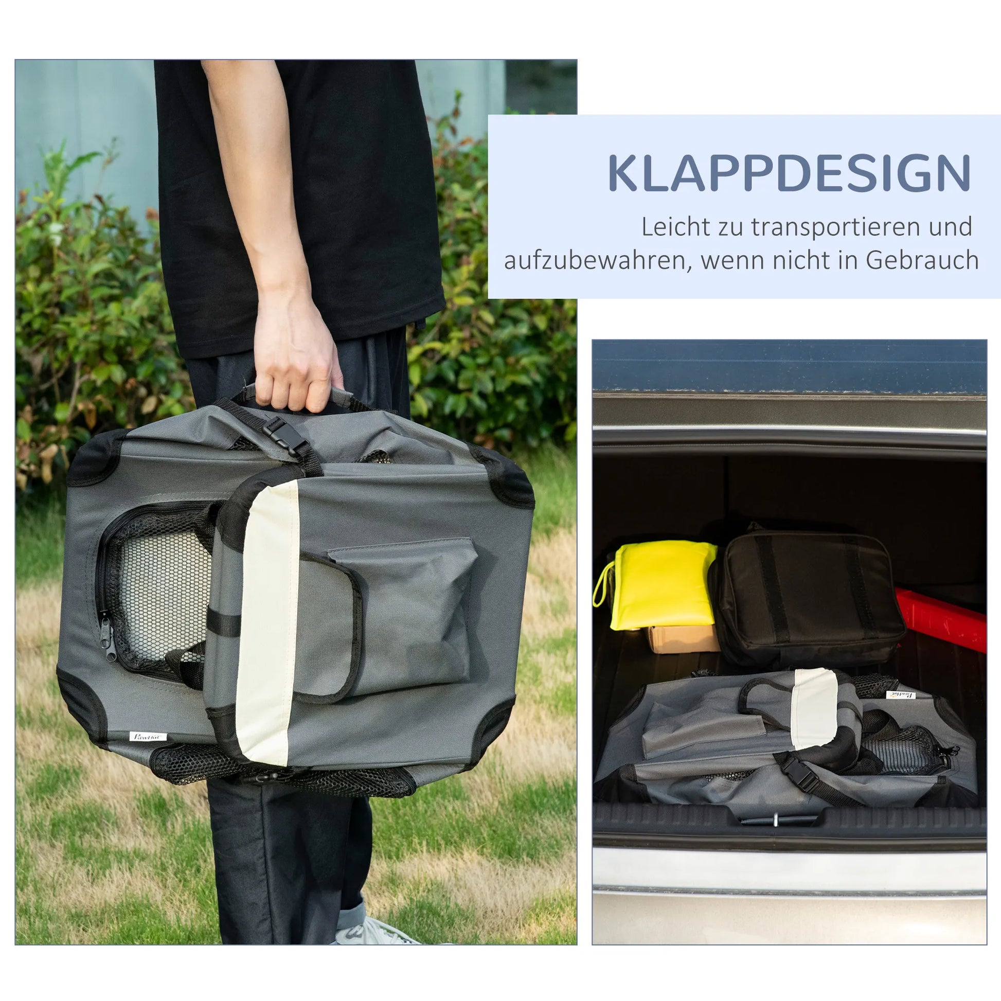 Transporta soma, transportēšanas kaste, kaķiem un maziem suņiem, salokāma, ar 3 durvīm, pelēka, 50,5 x 33,5 x 35 cm
