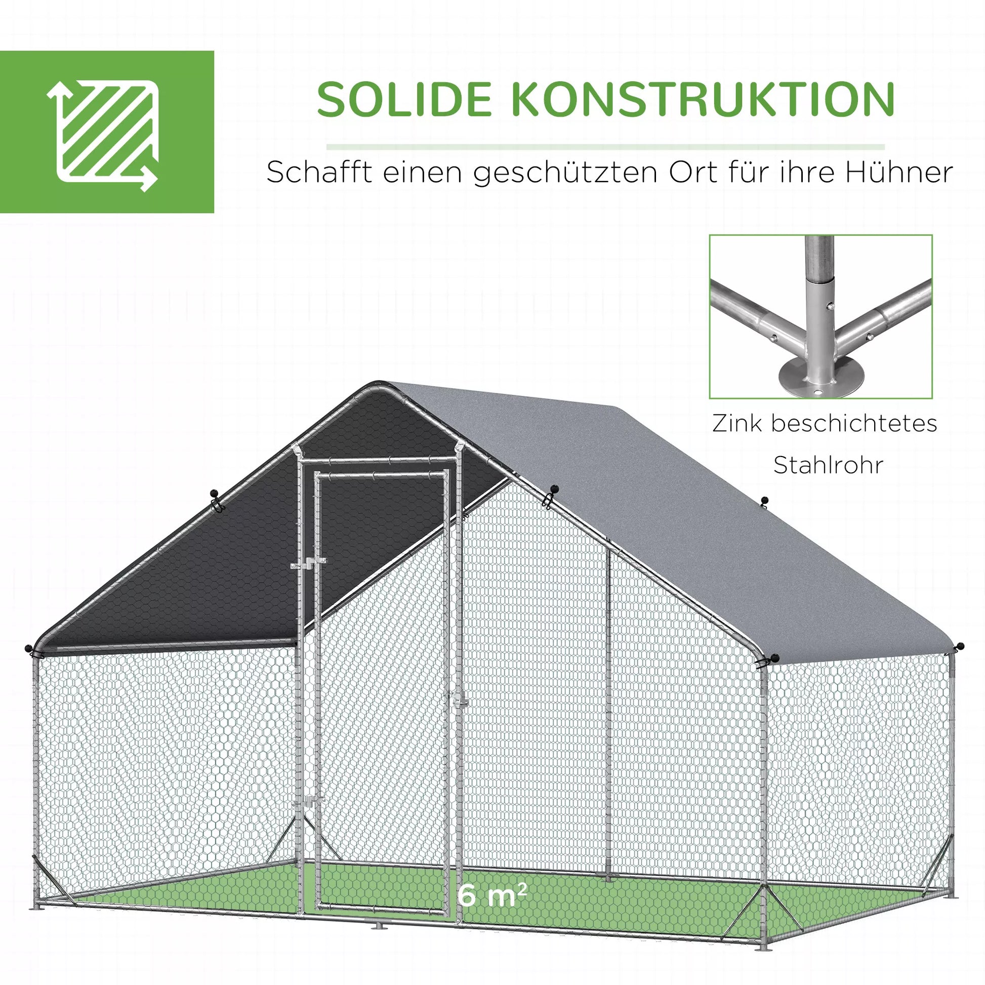 Šī āra vistu kūts ir lieliski piemērota, lai nodrošinātu jūsu vistām drošu un brīvu ganīšanās telpu. Izturīgie cinkotie metāla rāmji, sešstūra sieta sienas un ilgmūžīgais, laikapstākļiem izturīgais pārsegs kūts iekšpusē nodrošinās jūsu vistām drošu vietu, kur lakt, skraidīt un atpūsties.