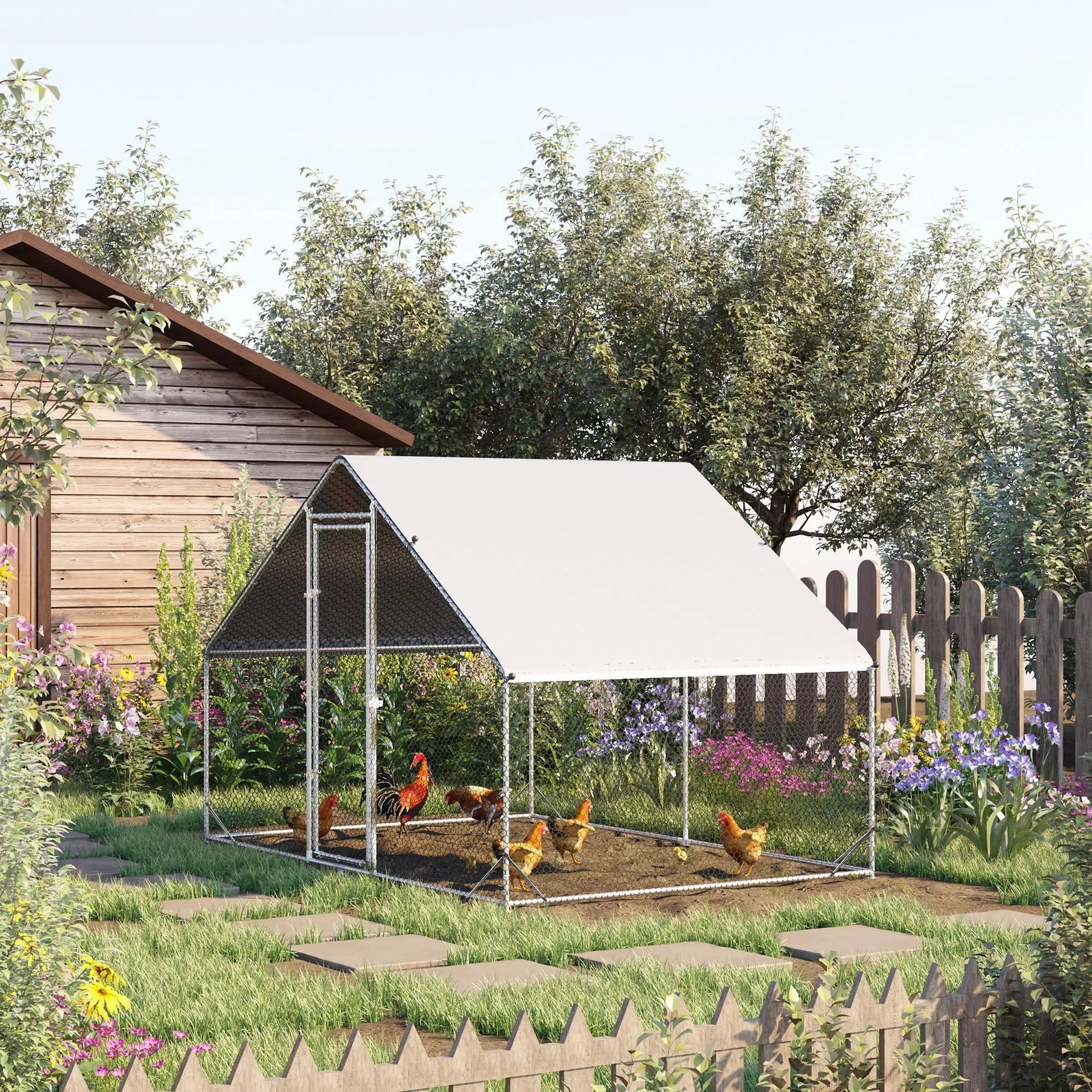 - ✔ Izmantojiet metāla vistu kūts pārsegu, lai pasargātu vistas no saules un lietus