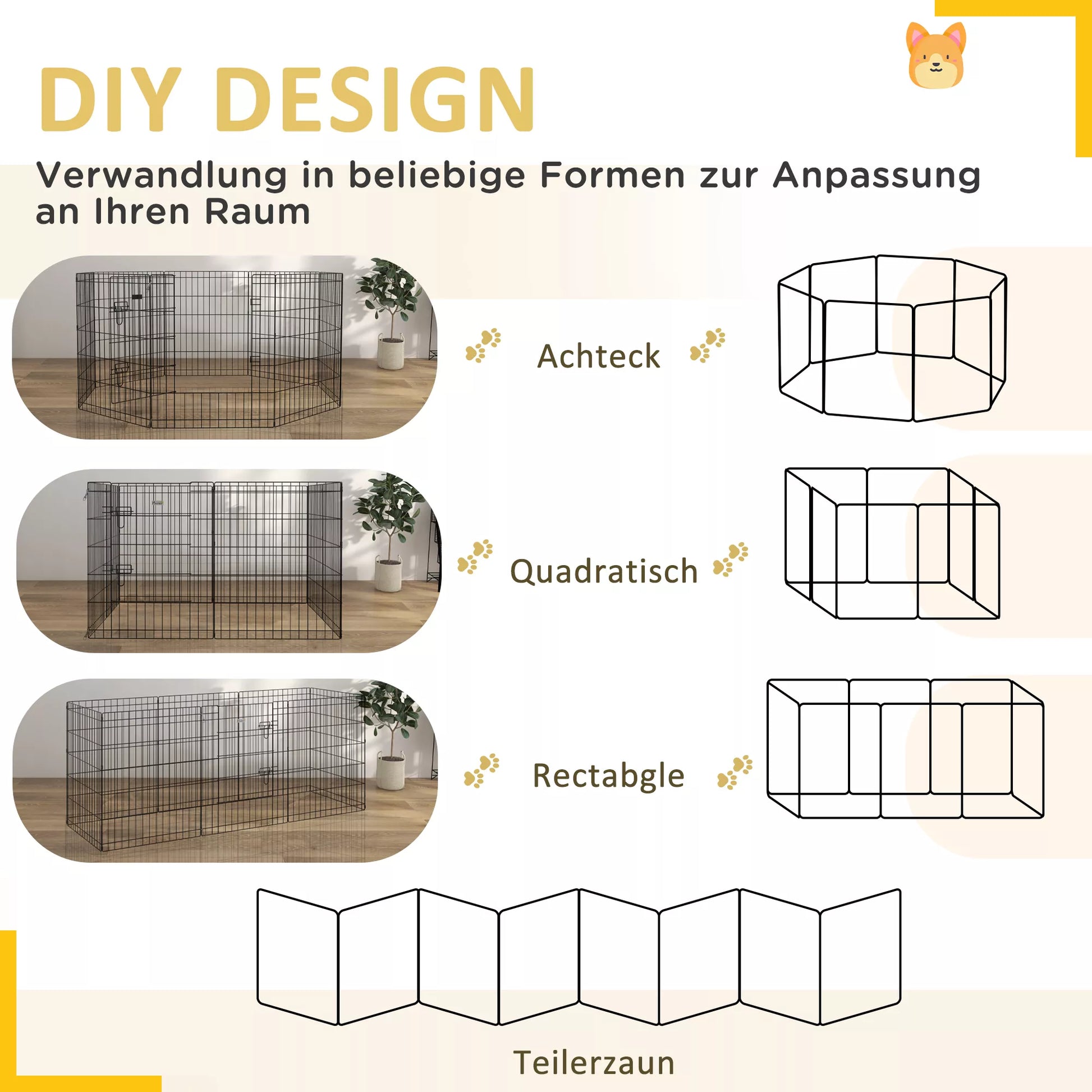 Rotaļu laukums nodrošina drošāku rotaļu laiku mazākiem mājdzīvniekiem. Tas ir pielāgojams un var tikt veidots astoņstūra, kvadrāta vai taisnstūra formā, tāpēc tas iederas jebkurā telpā vai dārzā. Lai nodrošinātu vairāk vietas, to var viegli savienot ar citu rotaļu laukumu, radot papildu rotaļu un atpūtas zonas.